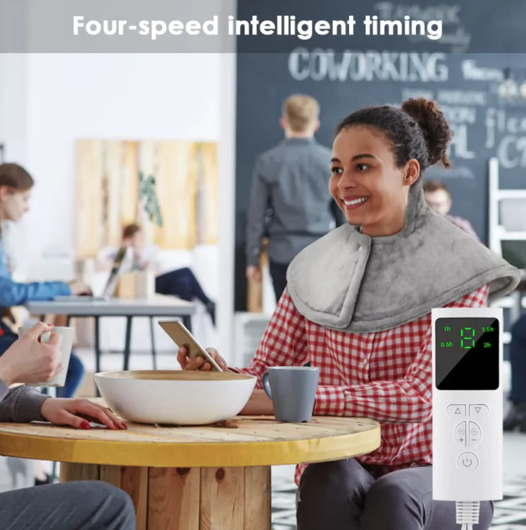 Cozy winter electric blanket designed as a heating shawl, perfect for shoulders and neck, features adjustable temperature settings, soft fabric, and fast heating for ultimate warmth and relaxation.